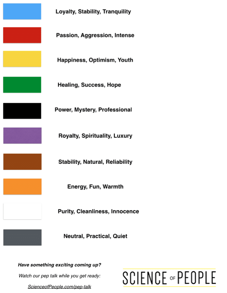 As we enter a new year, I wanted to focus on happiness and mental wellbeing. As broad and as scary as that subject may seem, it can actually be impacted by things as simple as the color you’re wearing or the colors you surround yourself with. This article highlights how colors can impact your mood and provides a chart (below) of colors and each specific colors effect on your mood. https://www.scienceofpeople.com/color-psychology/
